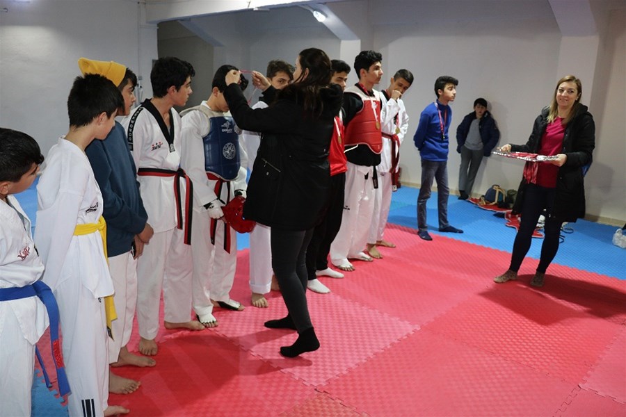 Yapılan Taekwondo müsabakalarına 8 okuldan 26 sporcu katıldı.