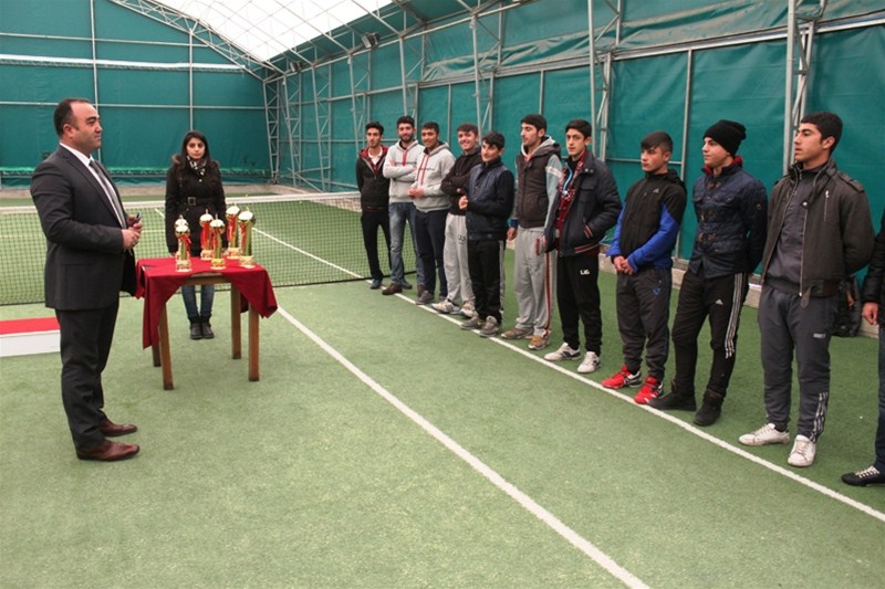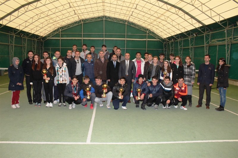 İl Müdürlüğümüz tenis kortlarında yapılan müsabakalara 8 okuldan 50 sporcu katıldı. Sporcular teniste en iyi olabilmek için birbirleri ile kıyasıya mücadele girdi. Müsabaka sonucunda dereceye giren okullara kupalarını, Gençlik Hizmetleri ve Spor İl Müdür vekilimiz Cemil Budak, İbrahim Çeçen Üniversitesi Sağlık Meslek Yüksekokulu Genel sekreteri Numan Aktaş, Spor Şube Müdürü Yusuf Öner, Tenis İl Temsilcisi Fırat Balkis ve beden eğitimi öğretmenleri takdim etti.