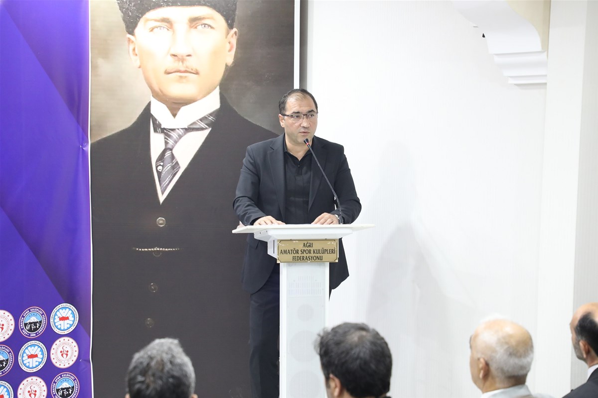 İl Müdürümüz Ahmet Çelebi ise konuşmasında genç sporculara hitap ederek, "Sizler, geleceğin profesyonel sporcuları ve ülkemizin gurur kaynaklarısınız. Elde ettiğiniz başarılar, ilimiz ve ülkemiz adına büyük anlam taşımaktadır. Her zaman sporun ve sporcunun destekçisi olmaya devam edeceğiz. Biz, Gençlik ve Spor İl Müdürlüğü olarak; spor tesislerimizi modernize etmeye, sporcu sayımızı artırmaya ve her branşta ulusal ve uluslararası başarılar elde etmeye kararlılıkla devam ediyoruz. Bugün, 65 aktif amatör spor kulübümüzle Ağrı’nın dört bir yanında sporu tabana yaymanın gururunu yaşıyoruz. Sporcularımızın elde ettiği başarılar, şehrimizin geleceğine umut, gençlerimize ise ilham vermektedir. Gençlerimizi kötü alışkanlıklardan korumanın en etkili yolunun onları sporla buluşturmak olduğuna inanıyor, bu bilinçle çalışmalarımızı sürdürüyoruz. Başarılarınız daim olsun," ifadelerini kullandı.