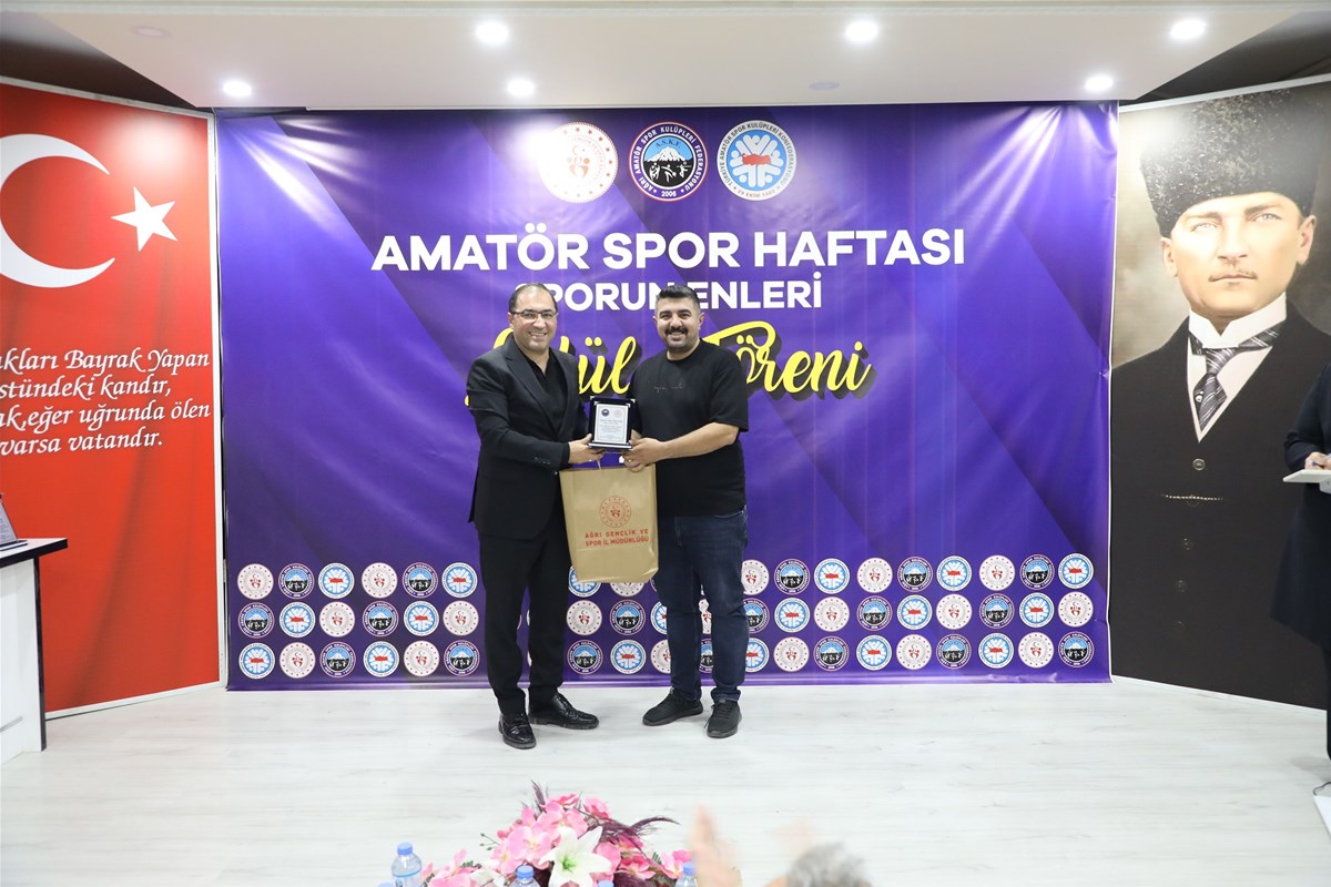 Programın açılış konuşmasını yapan ASKF Başkanı Celal Bulut; Amatör sporun önemine değinerek, "Amatör spor, sadece bir yarışma değil, disiplinin, fedakârlığın ve tutkunun adıdır. Bu yolda yürüyen her sporcumuz, büyük bir azmin ve karakterin temsilcisidir. Bugün, bu azmin ve emeğin karşılığını almak için bir aradayız. Hafta boyunca İl Müdürlüğümüzce çeşitli spor branşlarında müsabakalar yapıldı. Haftayı dolu dolu etkinlikler ile geçirdik dedi.