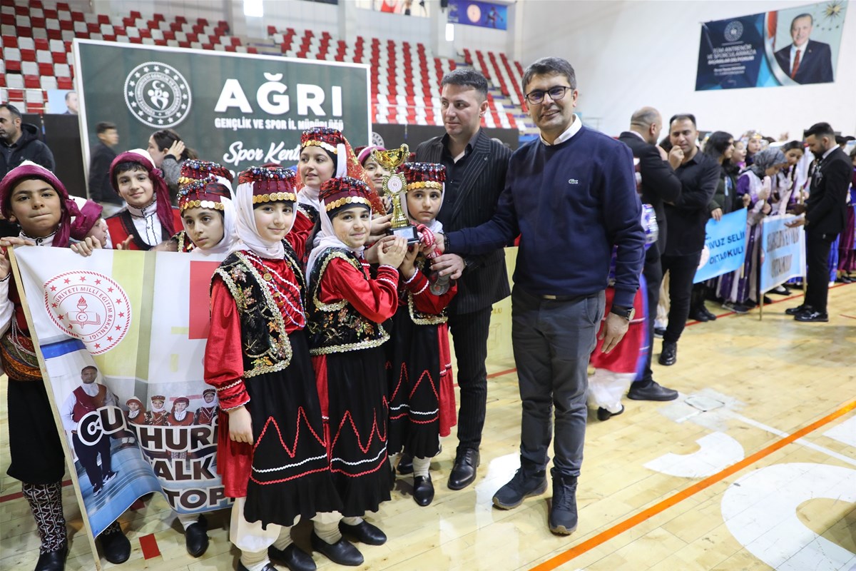 Kategorilerinde birinci olan okullar, grup yarışmalarında Ağrı'yı temsil etmeye hak kazandı. Dereceye giren kulüp ve okulların kupa ve madalyaları; Spor Hizmetleri Müdürü Cemil Budak ,İl Milli Eğitim Müdürü Hasan Kökrek, Halk Oyunları İl Temsilcisi Edip Erdoğan , Halk Eğitim Merkezi Müdürü Kasım Polat ve katılımcılar tarafından takdim edildi.
