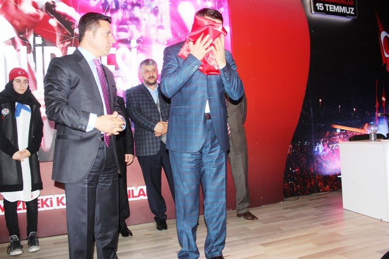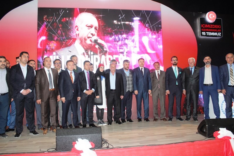 "Sizden daha kahraman yeryüzüne gelmemiştir, gelmeyecektir. O gece sizin sayenizde bayrağımız düşmedi, ezanımız susmadı, vatanımız çiğnenmedi ve namusumuz elimizden gitmedi. Bu münafıklar o gece muvaffak olsalardı bugün burası işgal altındaydı. Ne Suriye'ye, Irak'a ne de başka bir yere benzerdi. İşte Kur'an-ı Kerim'de de Allah'ın buyurduğu millet işte bu millettir. Bu millet de elbette ki hiçbir millete benzemeyecektir. Siz darbeyi önlediğiniz gibi aynı zamanda millete ve ümmete ışık oldunuz. Ümmet sizin sayenizde tekrar umut kazandı. İnşallah buradan yükselen ses bütün İslam alemine umut olacaktır. Millet o gece sadece Türkiye'yi kurtarmadı bütün İslam alemini kurtardı. Allah milletimizi daim etsin, birlik ve beraberliğimizi muhafaza etsin."
