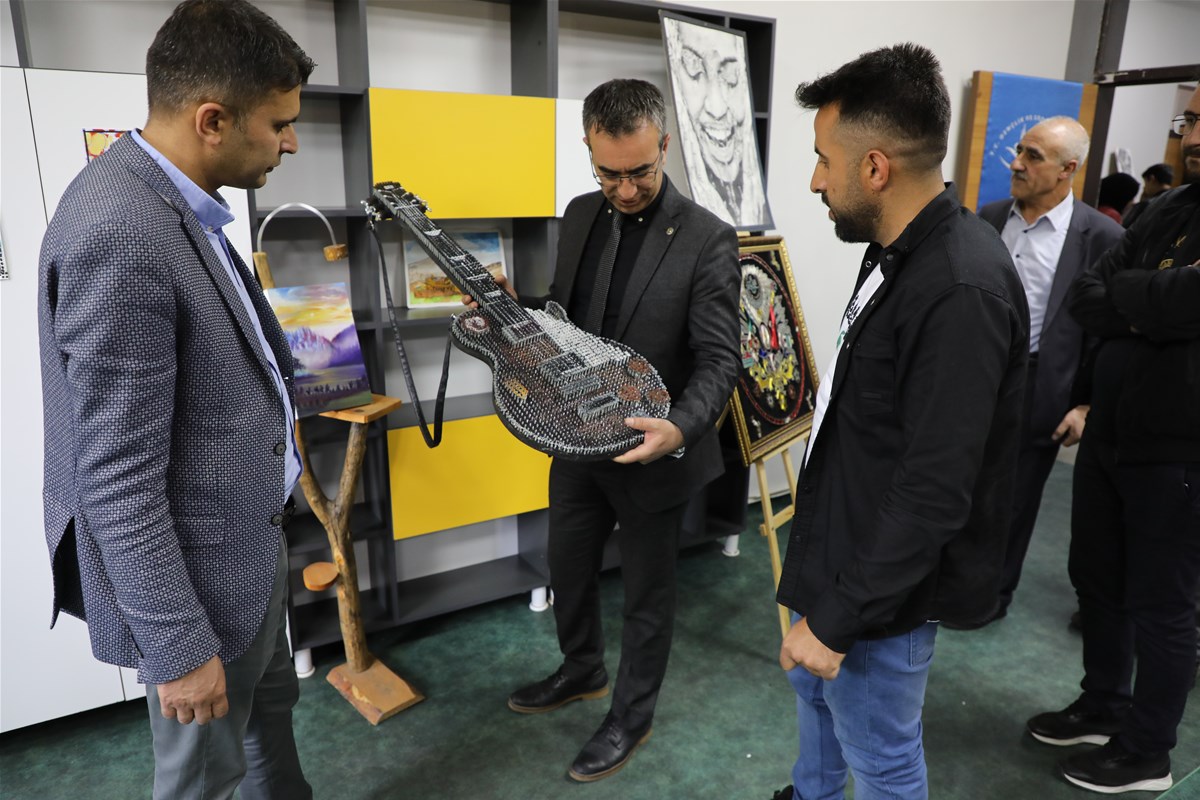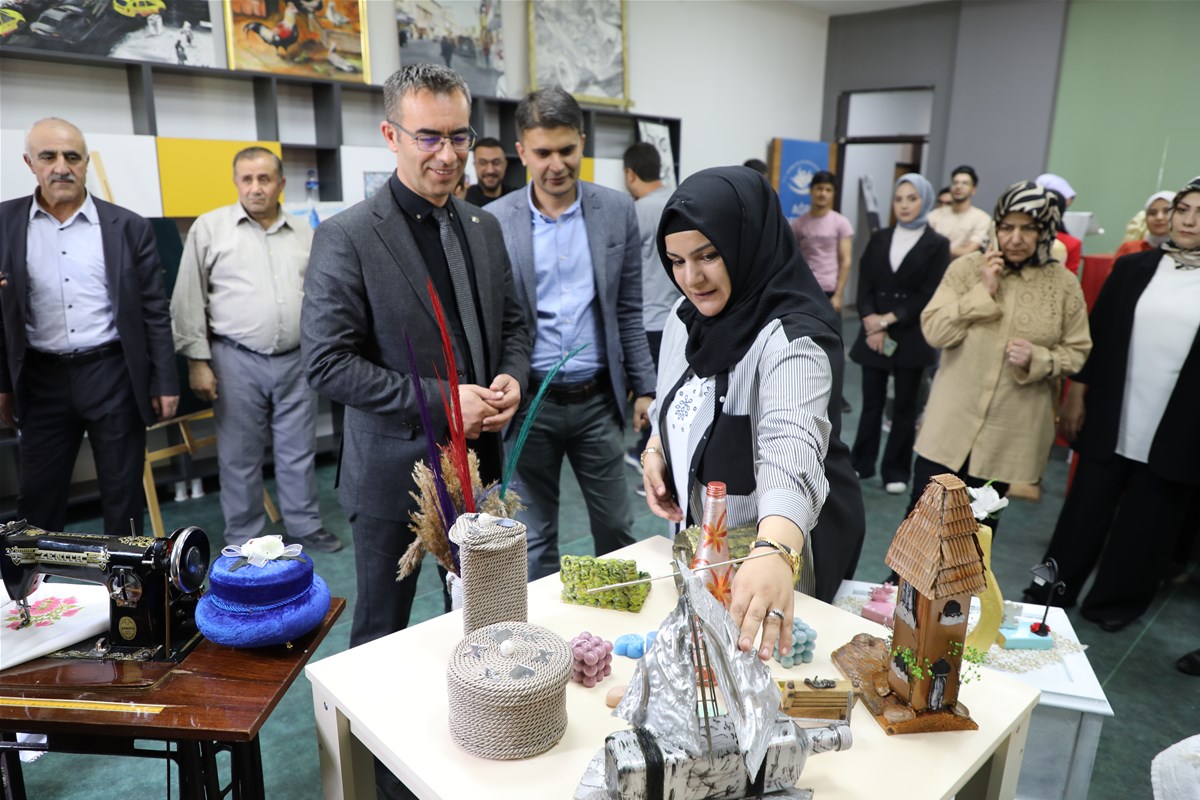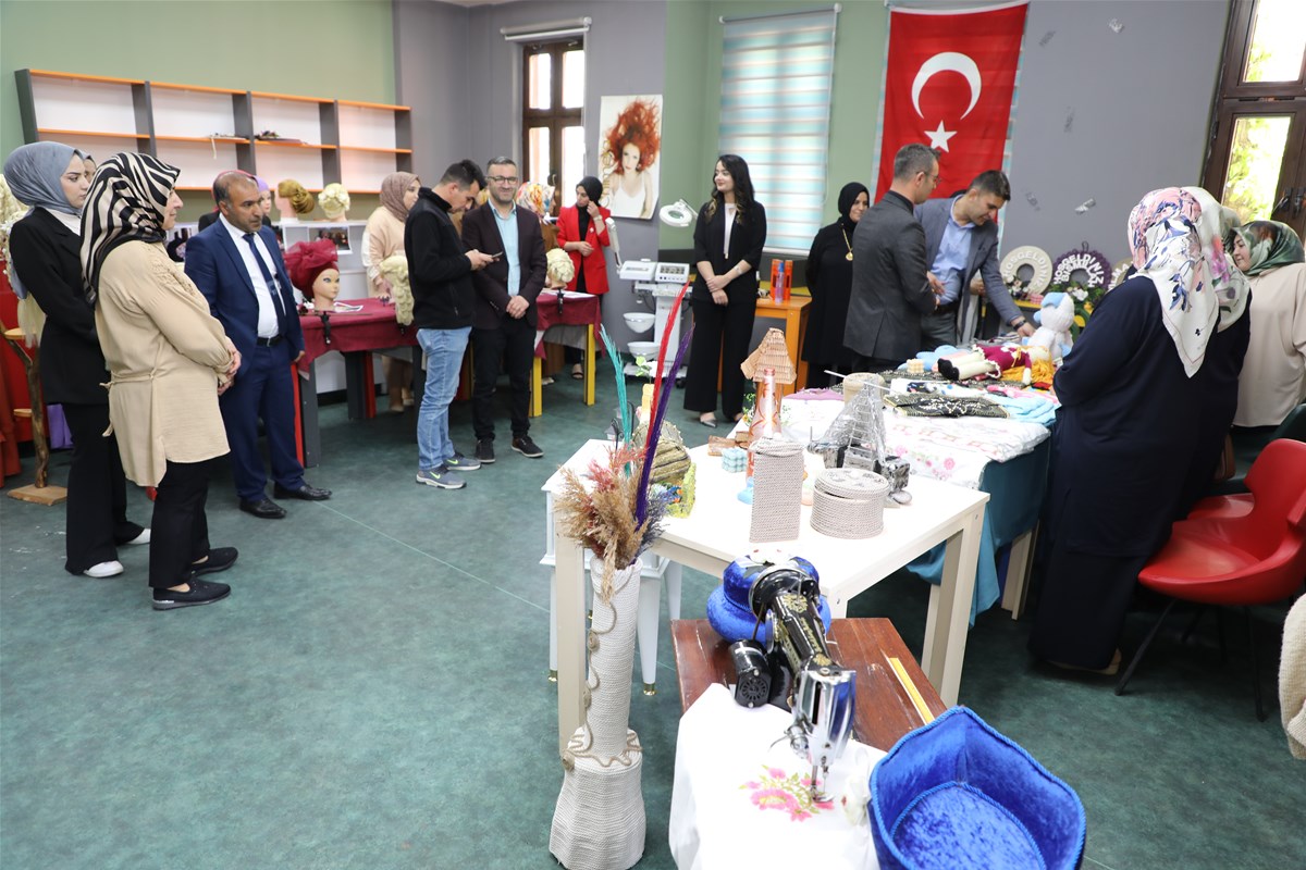 Ağrı Gençlik ve Spor İl Müdürü Fedai Din, Halk Eğitim Merkezi Müdürü Kasım İhsan Polat, Gençlik Hizmetleri Müdürü Ebru Duru kursiyerlerin büyük emekle yaptığı; giyim, resim, iğne oyası, nakış, tel kırma, dekotarif ahşap boyama ve ipek böceği kozası gibi eserlerini tek tek inceledi. Yapılan eserler hakkında bilgiler veren kursiyerlerin eserleri büyük beğeni topladı.